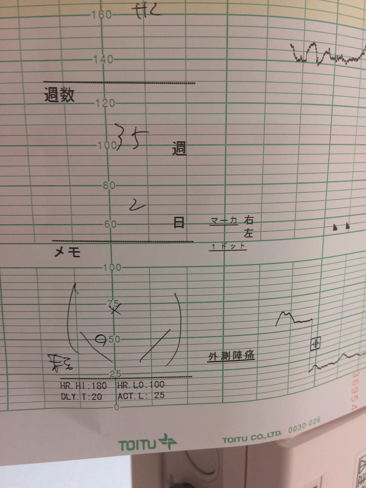 陣痛計をどこに付けたかの絵が描いてありました!