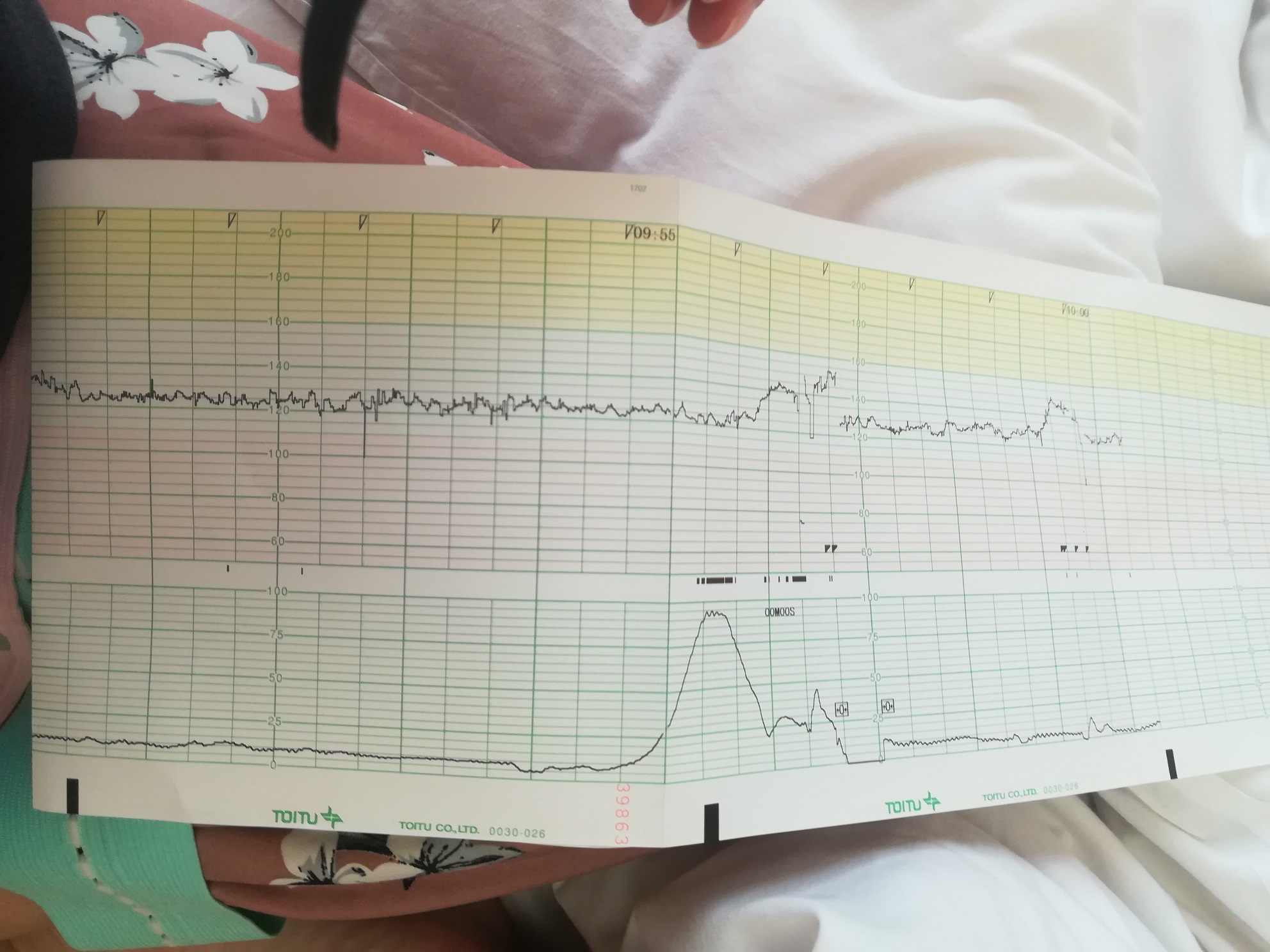 予約時間の1時間10分前に病院到着、受付をし、体重・血圧・体温を測り、検尿を提出、その後入院していた階へ上がり、NST開始!